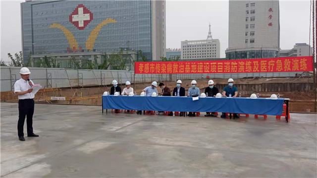 5月12日上午,孝感市傳染病救治基地舉行了消防演練及醫(yī)療急救演練,一醫(yī)院領(lǐng)導(dǎo),區(qū)代建辦及現(xiàn)場各參建單位工作人員共計(jì)50余人參加了此次安全演練。
